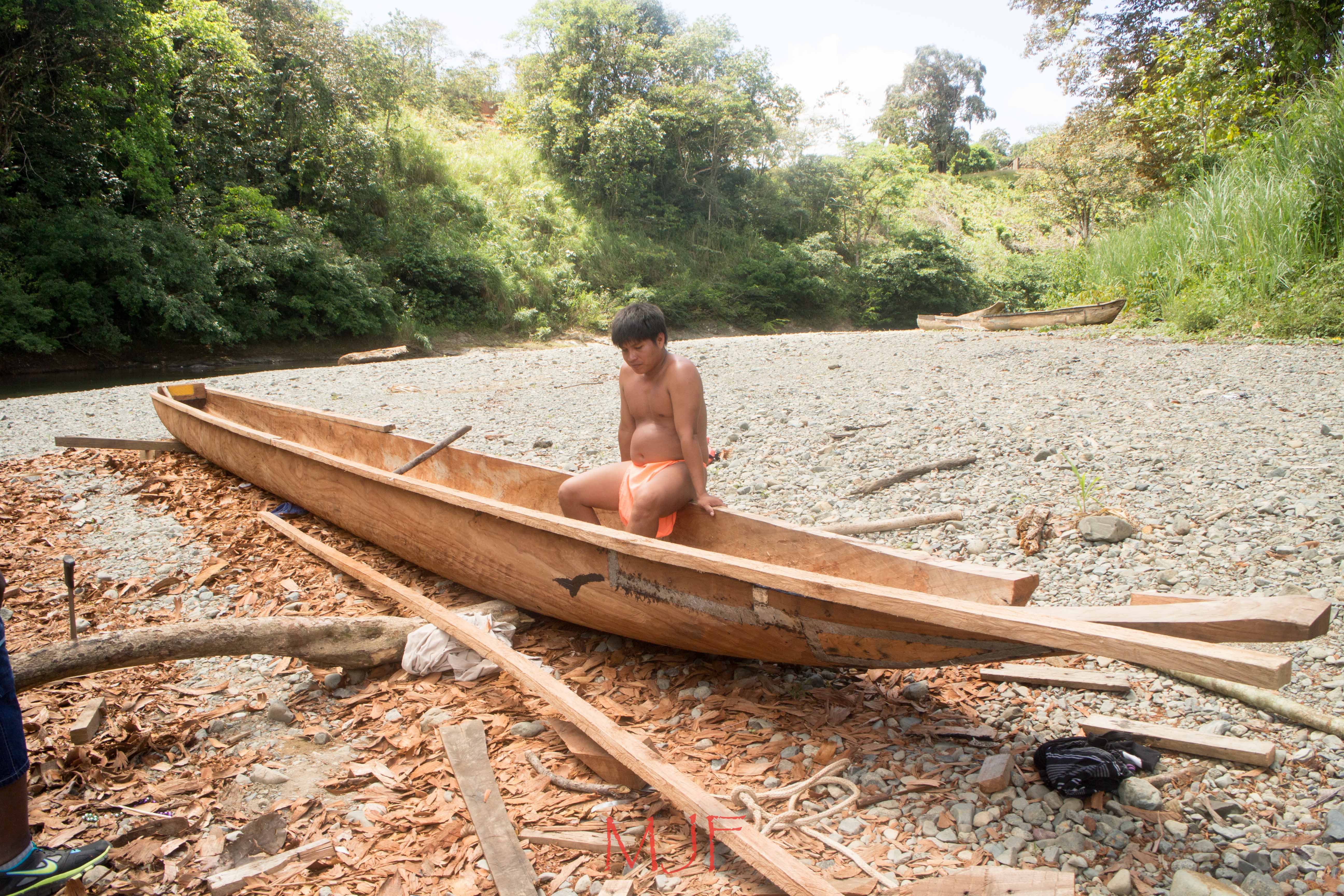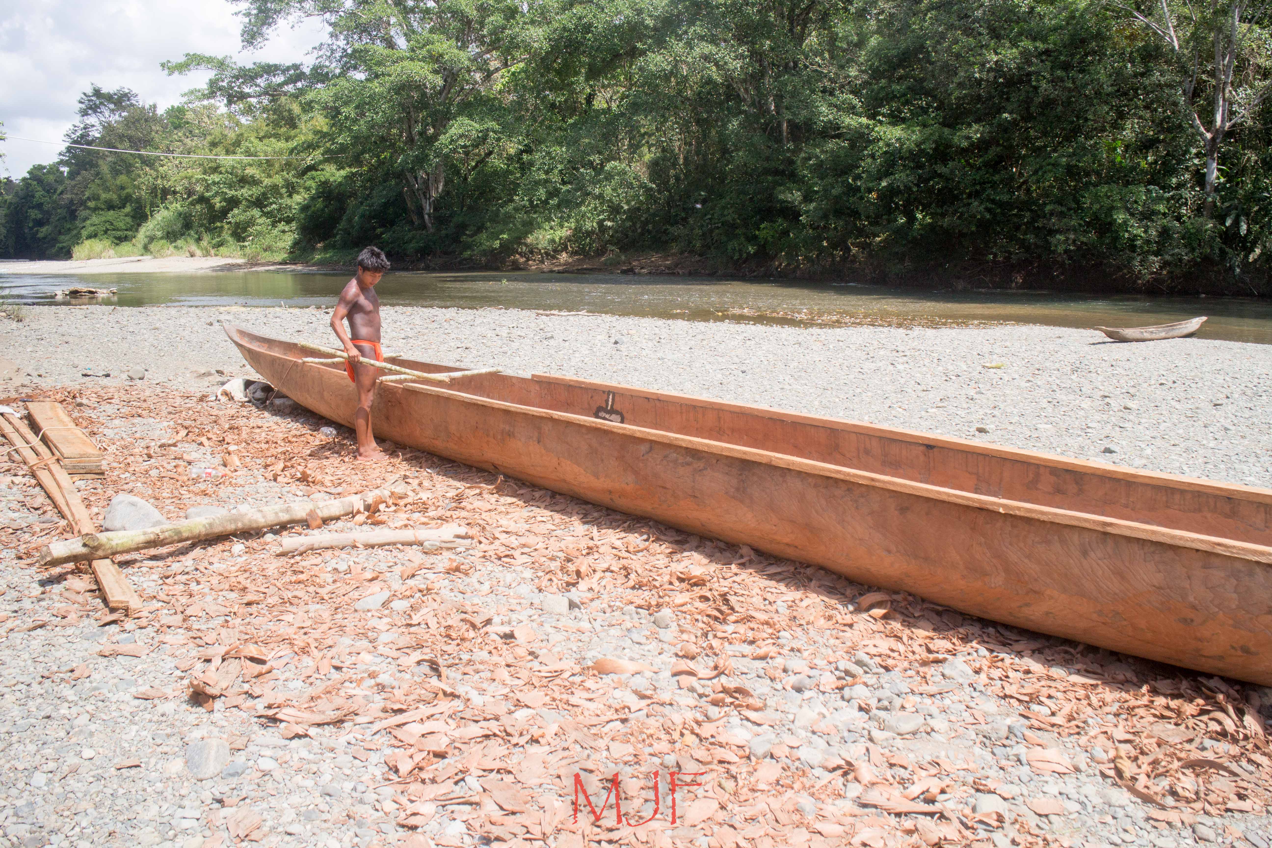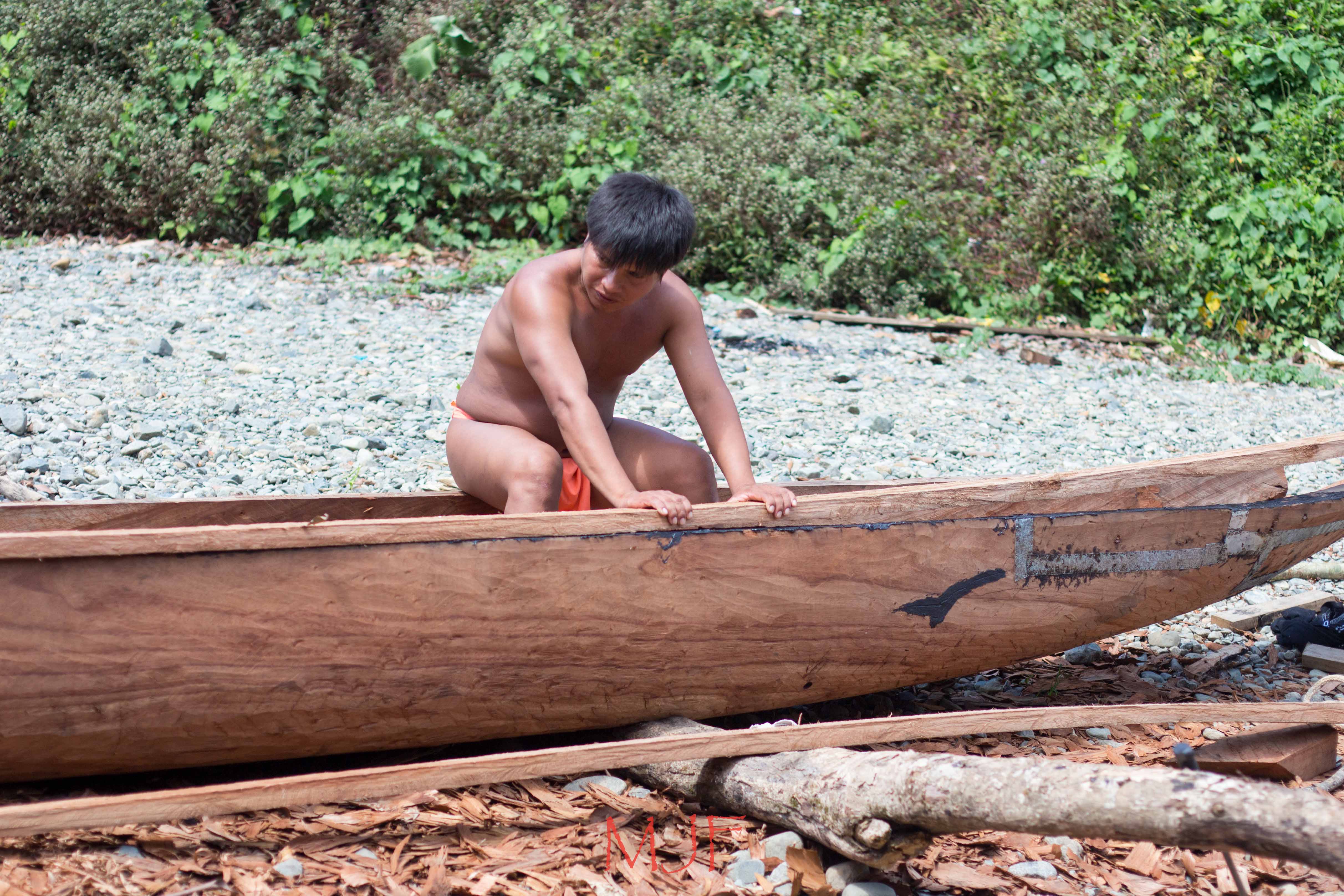 This man was college educated, he returned to his village to make a contribution. Here he is building his own canoe by hand!